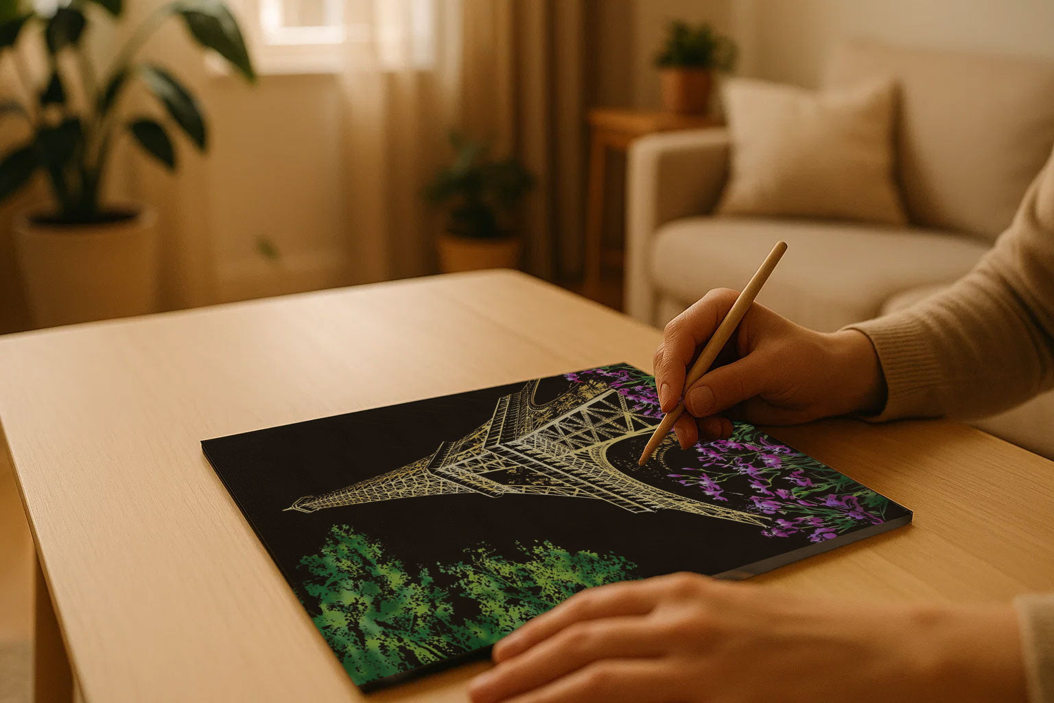 At Mind Space, everything we create is designed to calm your thoughts and spark your creativity. Our scratch-art boards invite anyone, beginners or artists, to slow down, unwind, and express themselves in a simple, satisfying way.